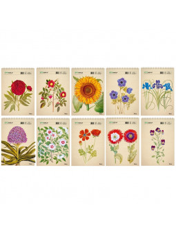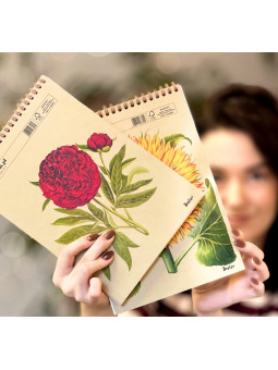 Każdy szkicownik poświęcony jest innemu kwiatowi: słonecznik, irys, mak, hiacynt, hibiskus, zawilec, jaskier, piwonia, róża czy bratek.